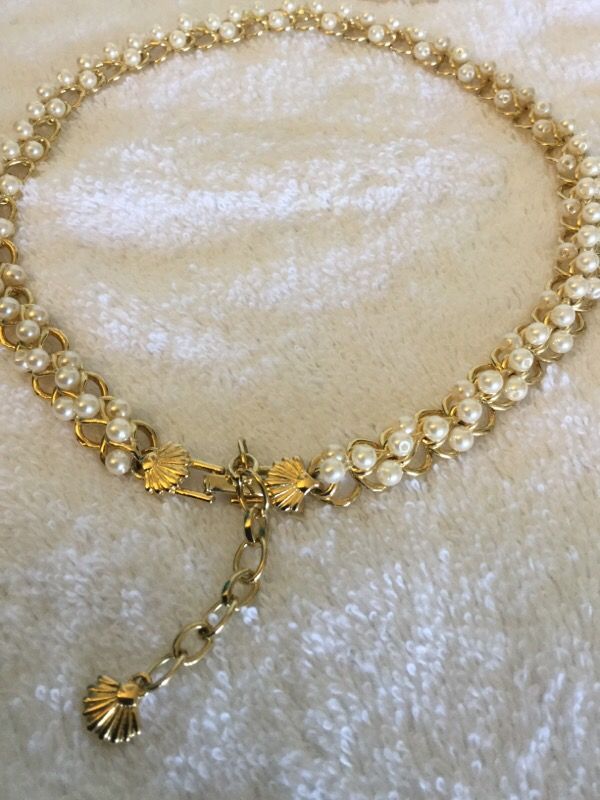 Fashion design , lovely necklace . Gold toned chain with Pearl and 3 sea shell clip , I posted many photos to show the details ! Beautiful shine and elegant look. Be beautiful ...π€