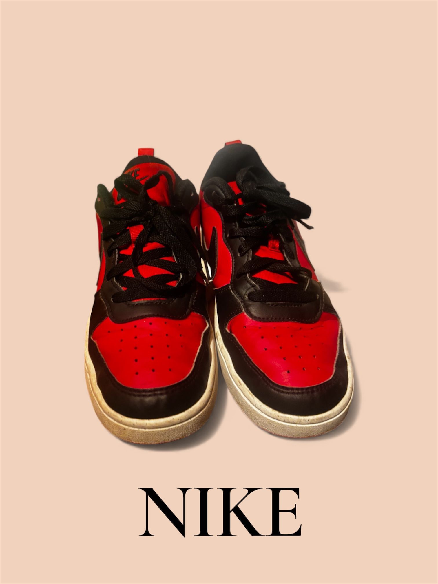 Selling a pair of Nike Air Jordan 1 Low in classic red and black colorway. These shoes are stylish, comfortable, and perfect for everyday wear or adding to a sneaker collection. They feature the iconic Jordan design with durable materials and a low-top fit for easy movement. In good condition with normal wear. Great for school, casual outfits, or basketball-inspired looks. For kids 6 year old