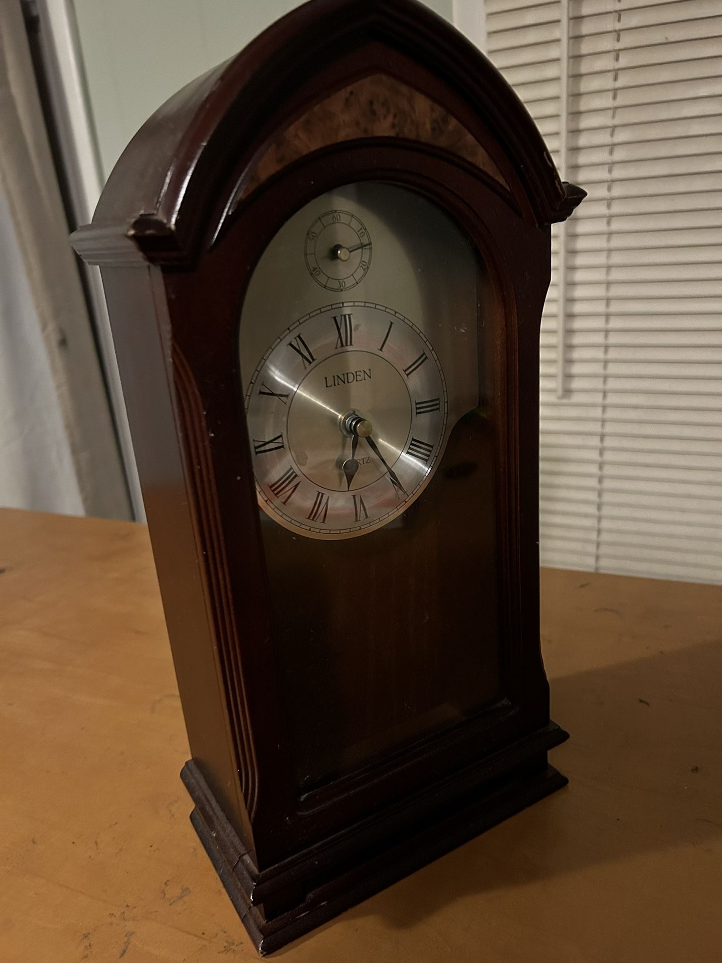 Still in great condition. Battery powered. Wood frame. Has wall mount Silent clock Great collectors item