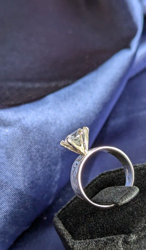 Vintage Ring 925 Sterling Silver WIde Band Solitaire Diamond Cubic Zirconia