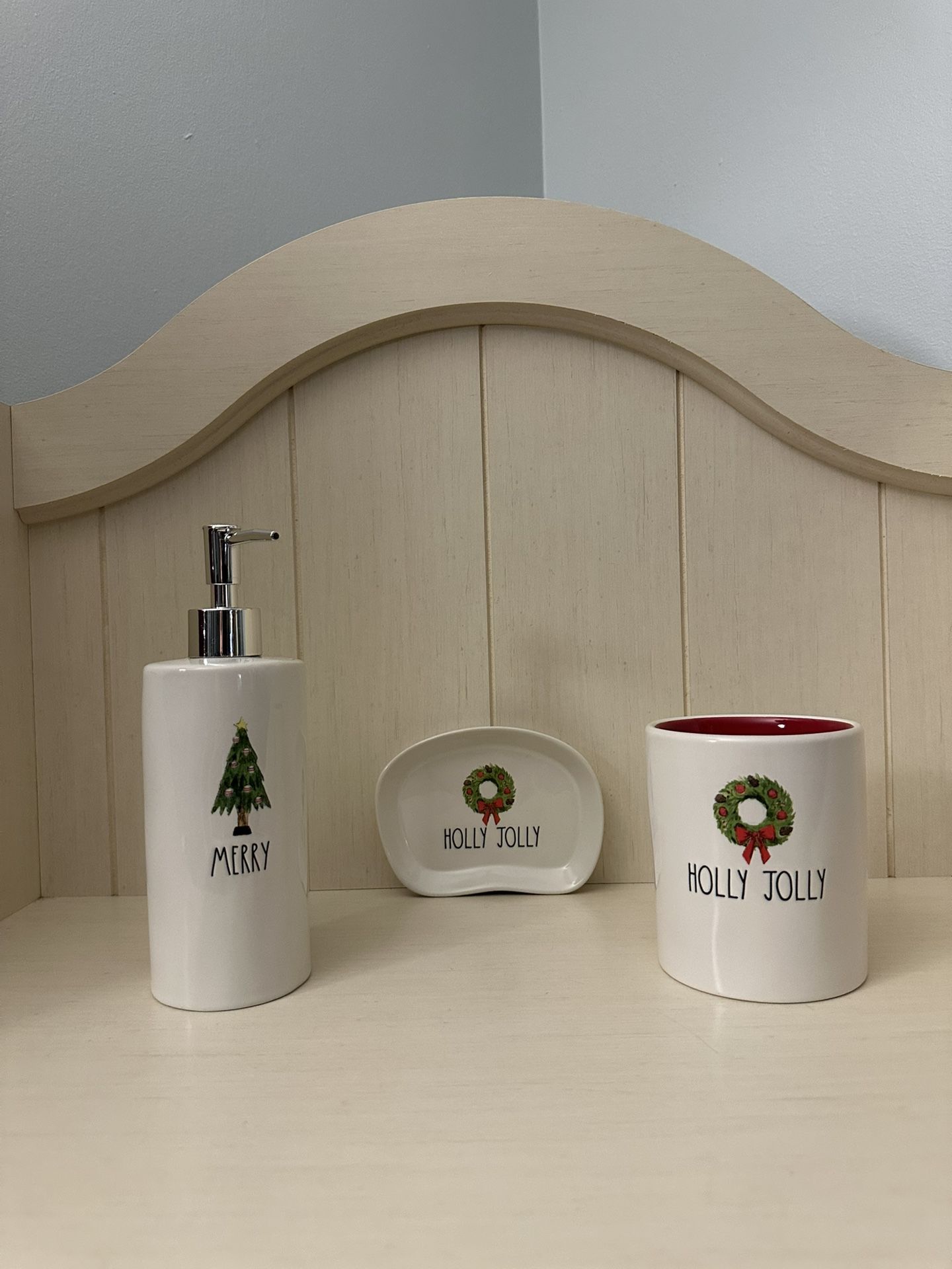Rae Dunn Soap Dispenser, Soap Dish & Cup