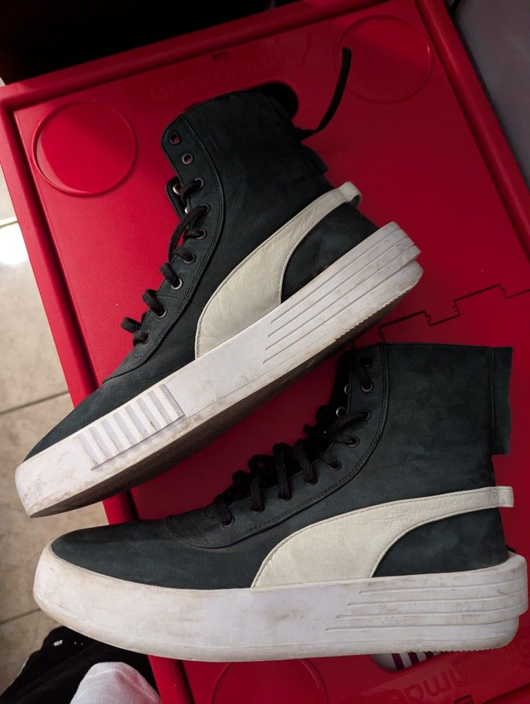 No box Size 10 (true to size) Soles could use a cleaning on scuffs, otherwise clean $20
