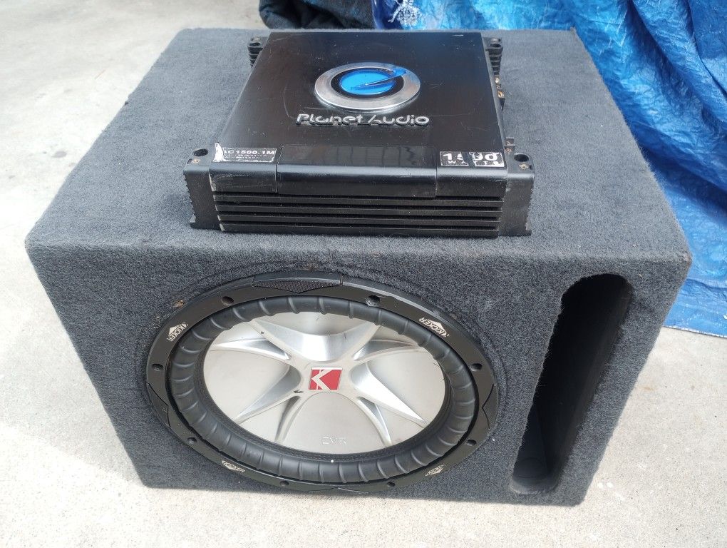 12" KICKER CVR IN PORTED BOX WITH 1500 BASS AMP 2 CH PLANET AUDIO......SOUNDS GOOD FIRM PRICE...... KEYWORDS,KICKER,CVR,12 KICKER, SOUNDS, BASS,