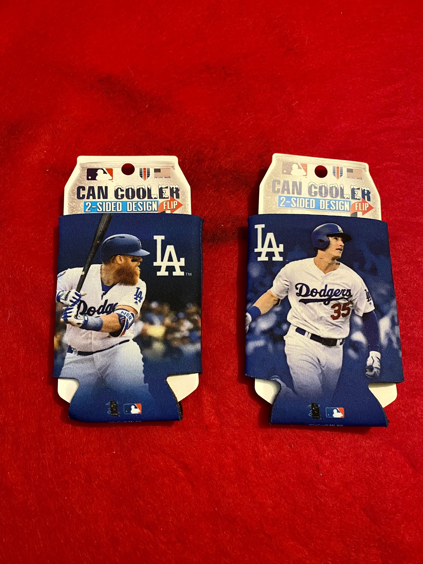 Dodgers Justin Turner and Cody Bellinger Can Coolers. Official MLB Merchandise. Selling each Can Cooler for $7 or $12 for both.