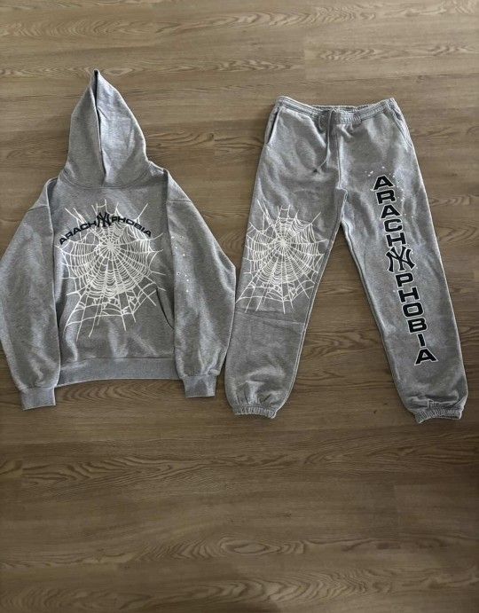 Spider Worldwide Grey Hoodie & Sweatpants Set – Size M Spider Worldwide set featuring the signature web graphic hoodie and matching sweatpants. Clean grey colorway with bold spider web details. Hoodie has a relaxed, boxy fit with dropped shoulders. Sweatpants have a straight-leg relaxed fit with elastic cuffs. Brand new condition. Hard streetwear set, perfect for everyday fits or layering. Rare combo. 🕷️ Details Brand: Spider Worldwide Size: M Color: Grey Condition: Brand new
