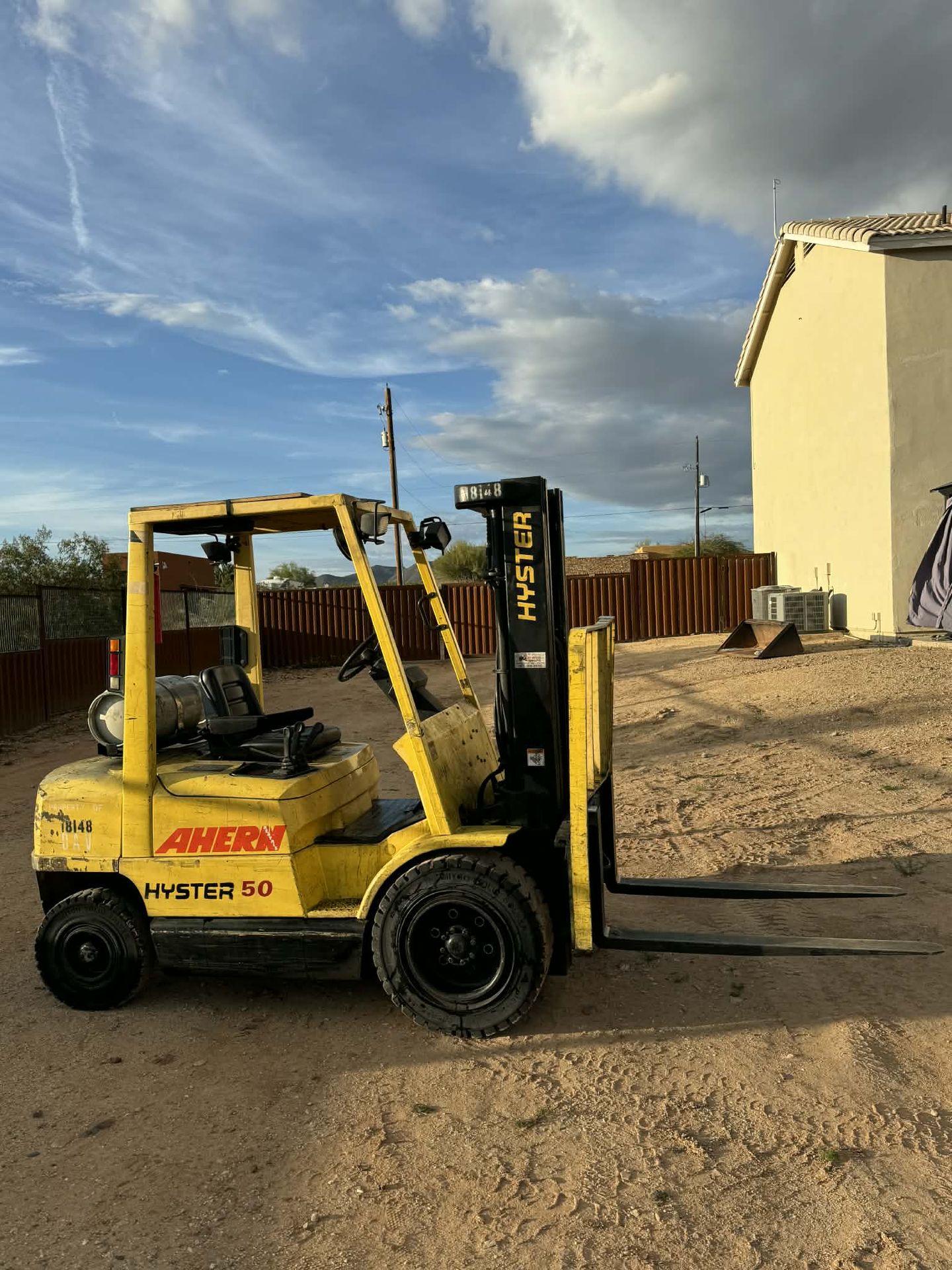 Posting for a friend 2003 Hyster H50XM forklift. Runs perfect operates great! Has really heavy duty off road tires (solids) Can be used in rocks, dirt, gravel, concrete you name it! 4 cylinder Propane GM engine. Very easy to operate drive and reverse foot pedal No need to press a clutch to put in gear Extremely convenient, has plenty of power it is ready to work. Only selling because I got a 8k compacity lift. This machine has never given me problems. Lifts 4,750 lbs. 3 stage 189 inches max height. No leaks what so ever. $7,200 thank you for looking and feel free to ask any questions. SERIAL NUMBER H177B21933X