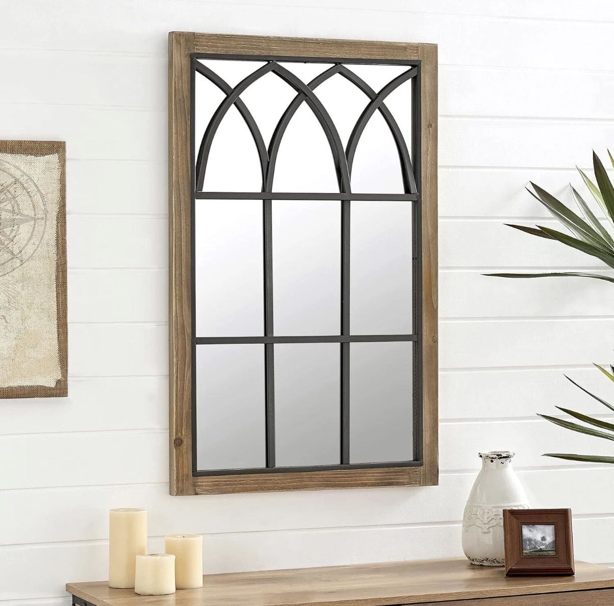 Upgrade your space with this stunning farmhouse-style window mirror! It features a rustic wood frame with elegant black metal arches. Perfect for an entryway, over a mantel, or as a statement piece in a living room. • Brand: FirsTime & Co. • Dimensions: 37.4" x 23.6" (95 x 60 cm) • Condition: Excellent / Like New (Still in original packaging) • SKU: 70015 Check out our other listings for great things with great prices!