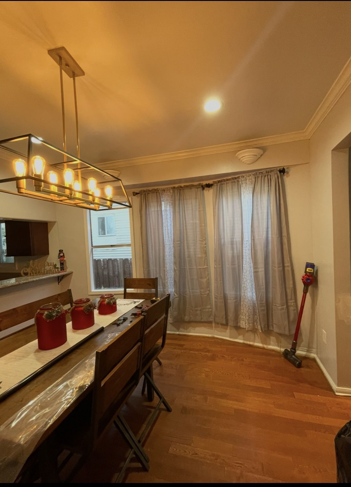 Selling table for 6 Beautiful high table with 4 chairs and one bench in great condition. Selling because we upgraded. Very heavy and well built.