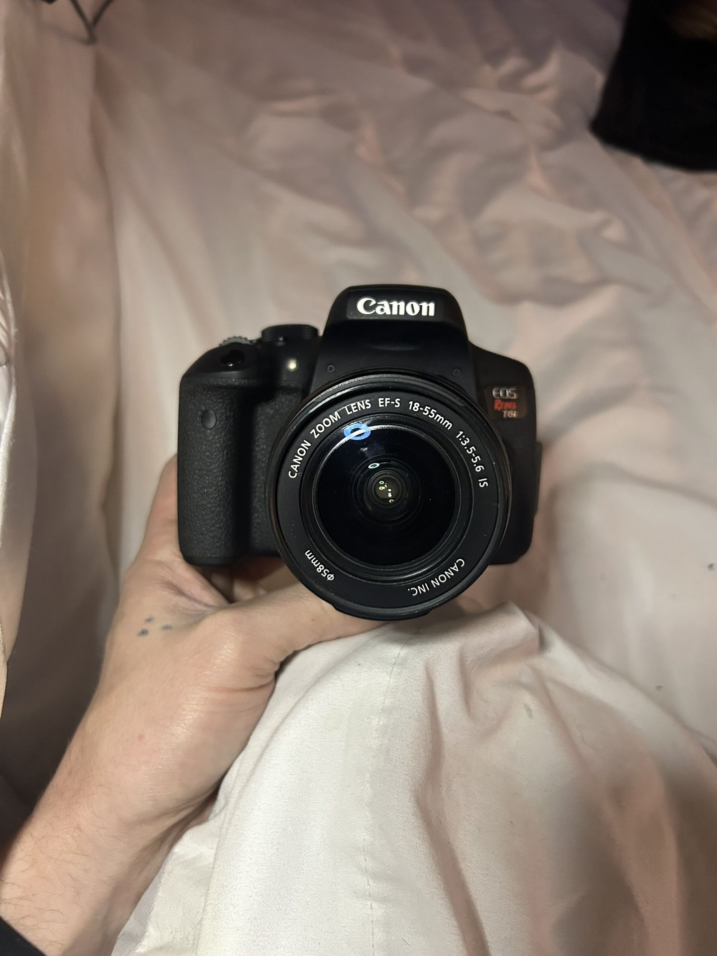 Like new an amazing cannon rebel Eos t6 plus accessories. Literally only used it a few times. It comes with esf 18-55mm is lens. Comes with cannon camera case and the battery and charger. Also comes with two microphones and the cords to hook it up to computers and stuff. It was close to a grand brand new I’m asking 300 or best offer