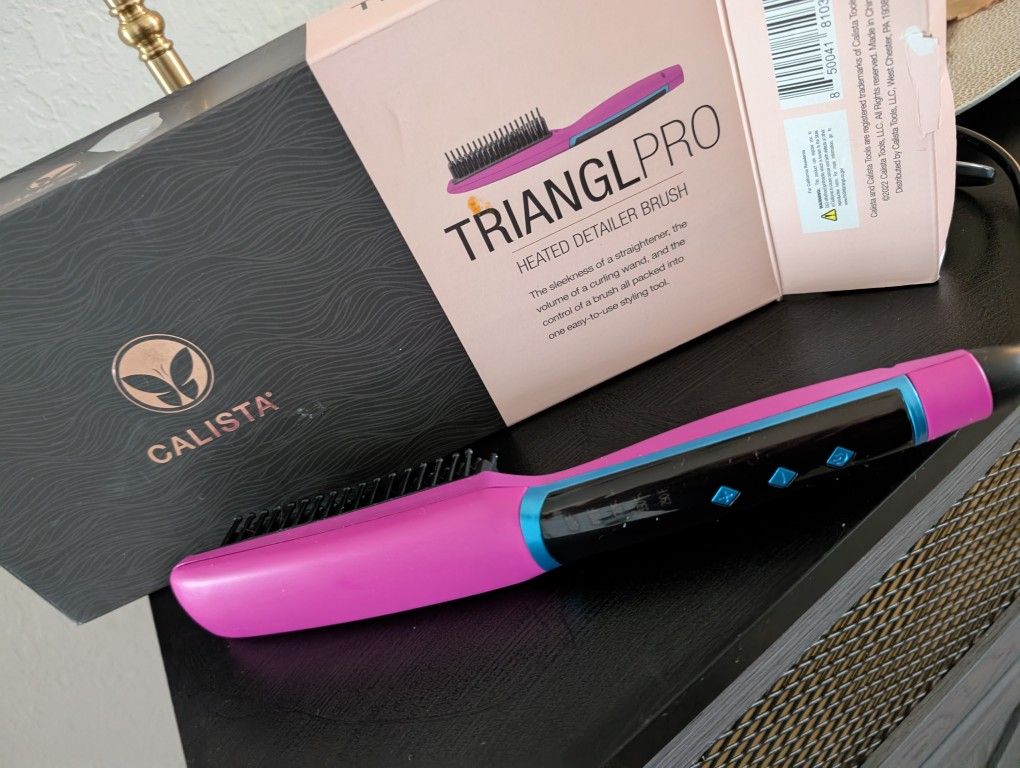 The Triangle Pro Thermal Detailing Brush is a hair detailing tool with firm bristles designed to flip, lift, direct, smooth, and straighten hair. Heats up to 430°F.