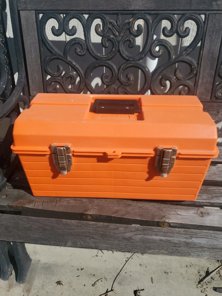 Contico 19” Hip Roof Tuff-E Tool Box Orange With Removable Tray used in great condition few scratches handle latches both work can add lock to lock it. 30 firm Check out my other listings thanks for looking Cash or zelle only please Pickup only.National city area