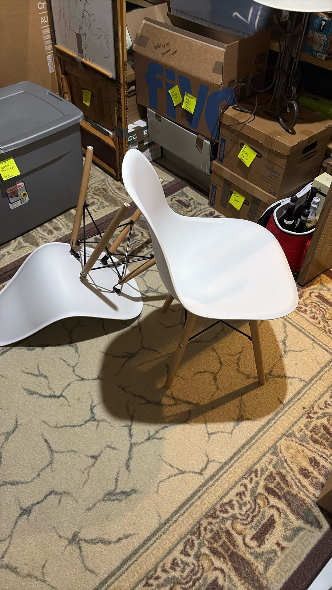 4x Plastic Chairs With Wooden Legs