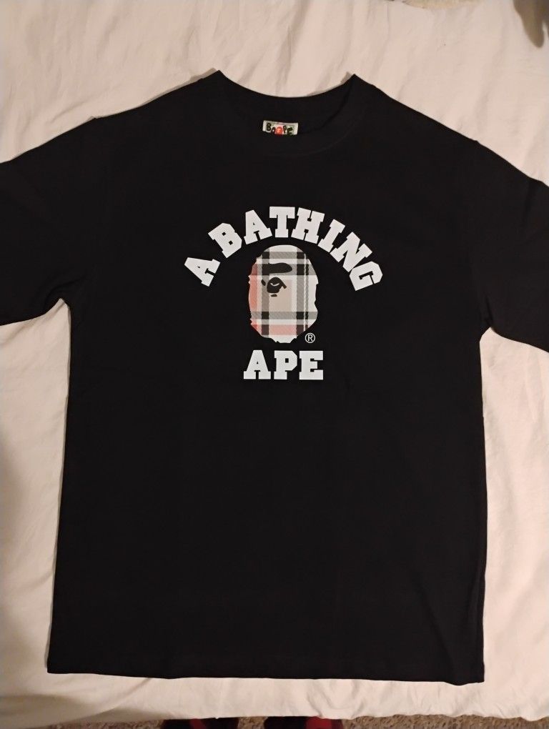 BAPE Check College T-shirt Black Multi Beige Size Medium | A Bathing Ape - Comes with original bag, open to offers :)