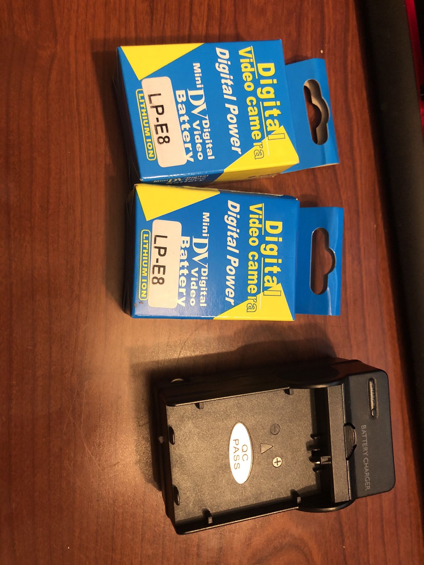 2 brand new batteries For canon dslr t2i and t3i Also included is a charger for the batteries