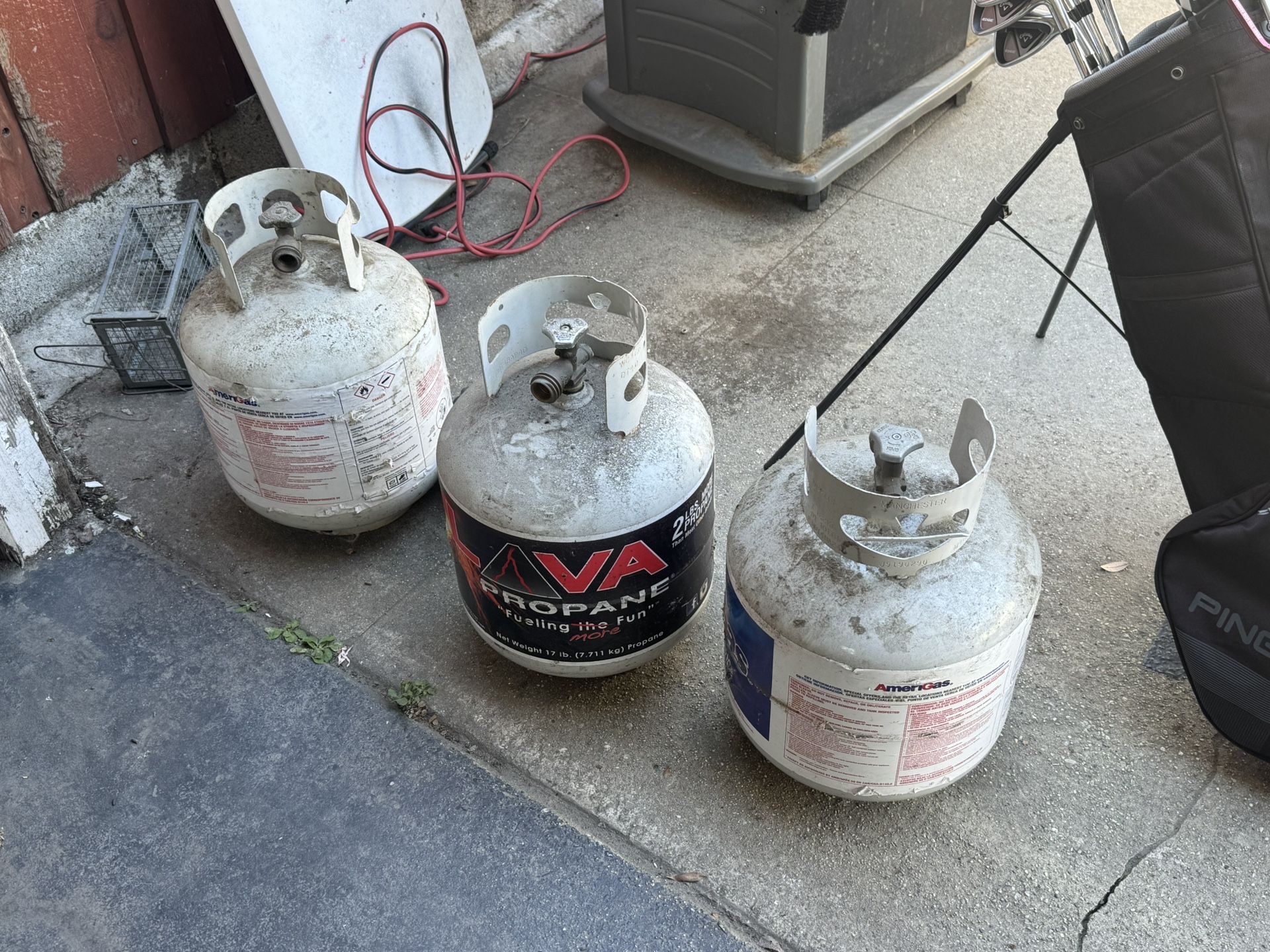 3 empty propane tanks. $40 for all 3 Cash or Venmo Pickup only in Long Beach (Wardlow & Delta)