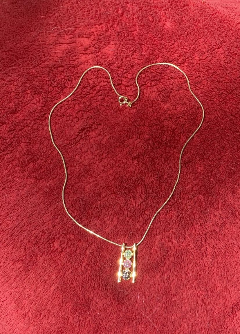 Necklace with 3 gem stones. Gorgeous 18” gold chain . Very delicate