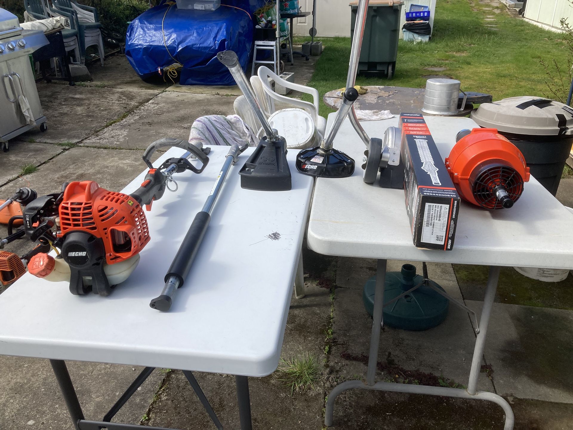 Power head is little used but excellent condition. All attachments, trimmer, hedger, edger,brush cutter, blower, extension are new