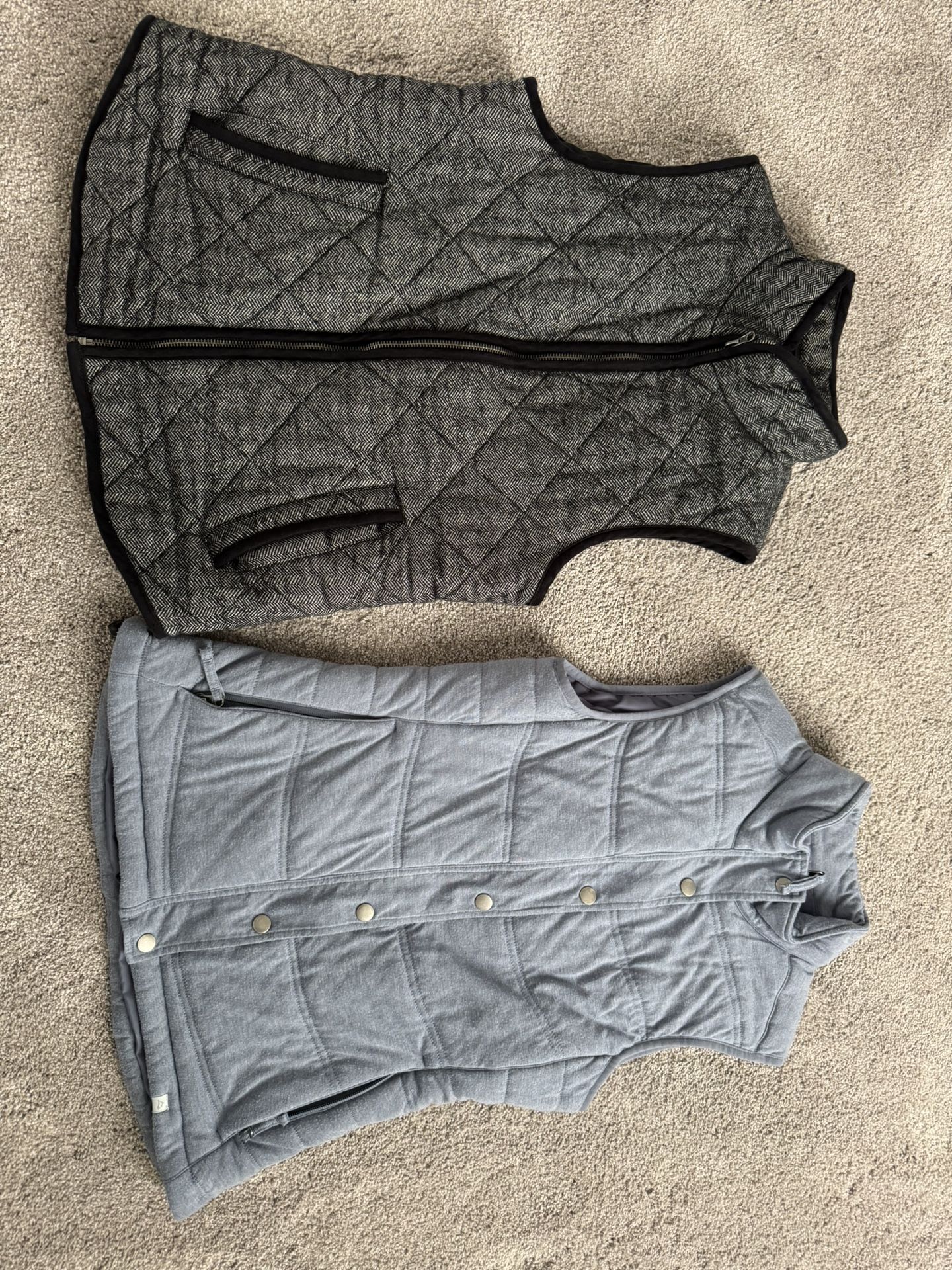 2 Vests Size: Medium Condition: Good 2 medium vest 1 black heathered look 1 Gray-light blue soft cotton Both for 20$ or $15 each Thanks for looking.