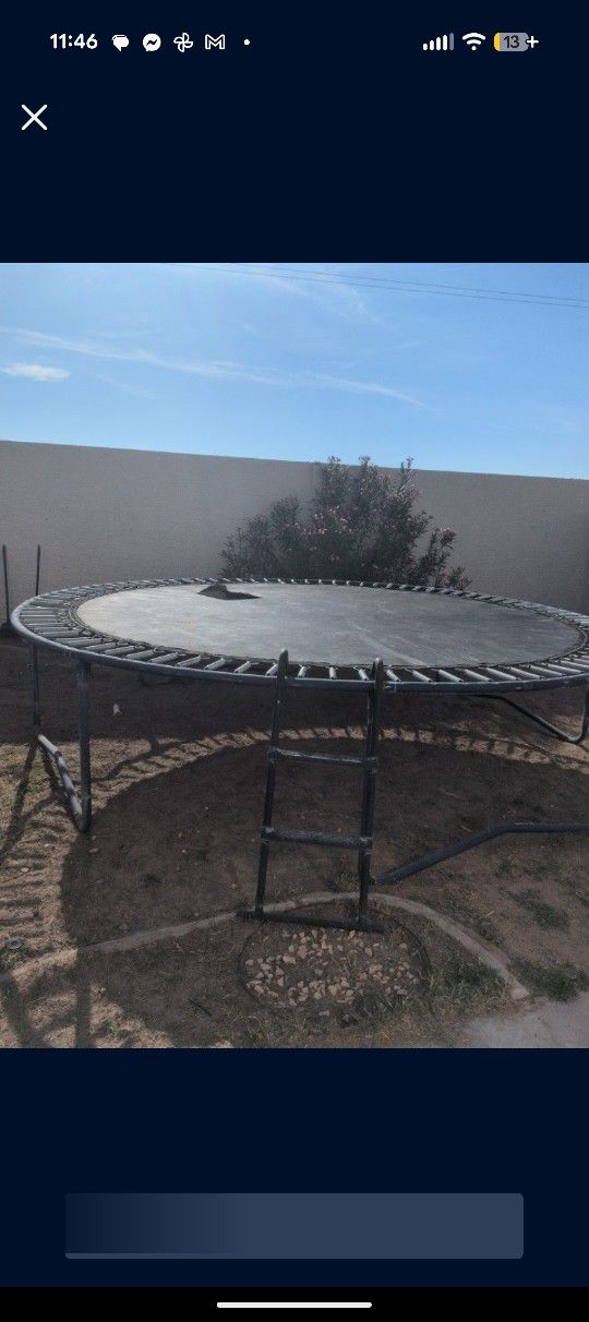 12 Ft Trampoline, needs a new jumping mat. Has the ladder and extra springs with a spring tool. It's free to someone that can make use out of it! Moving this weekend, need gone. I will take it down before pick up.