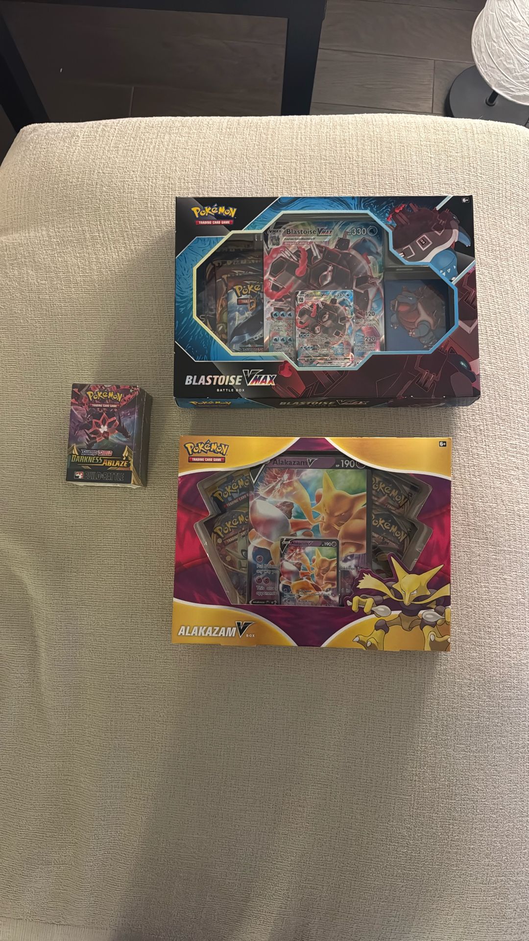 Selling a sealed Pokémon TCG bundle. Includes: • Blastoise VMAX Battle Box • Alakazam V Box • Sword & Shield: Darkness Ablaze Build & Battle Box All items are factory sealed and brand new. Great for collectors or pack openings. Local pickup.