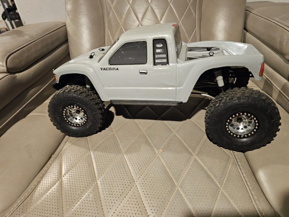NO TRADES/ NO SHIPPING/NO CHARGER INCLUDED $450 Fusion 1800kv 2 in 1 25kg waterproof servo rear, high clearance links , 1.9 wheels and tires weighted with anti foams, Tacoma body light grey used, crawls amazing