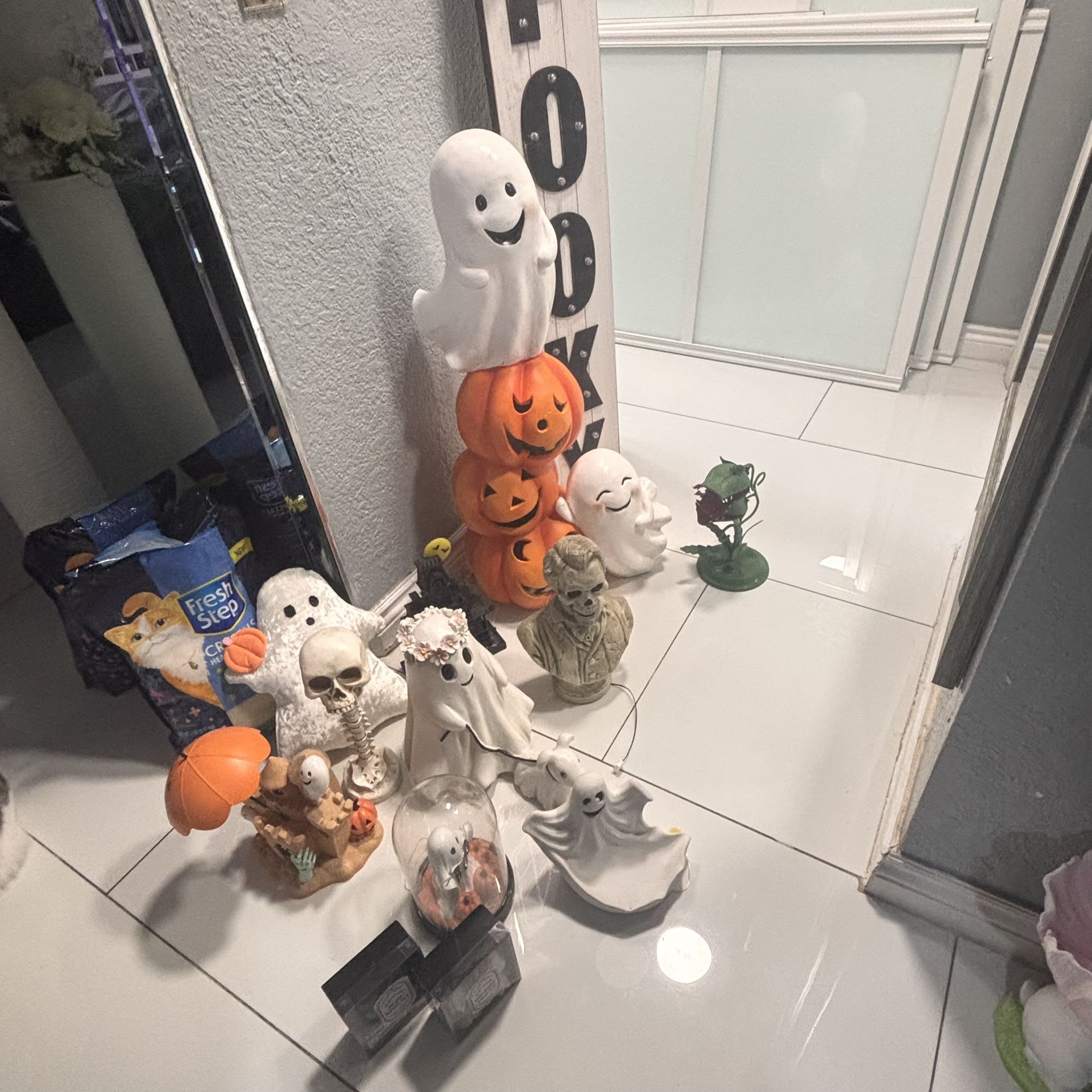 Halloween decorations assorted and different sizes , battery operated and some motion activated, must take all including the big spooky sign… All working perfectly
