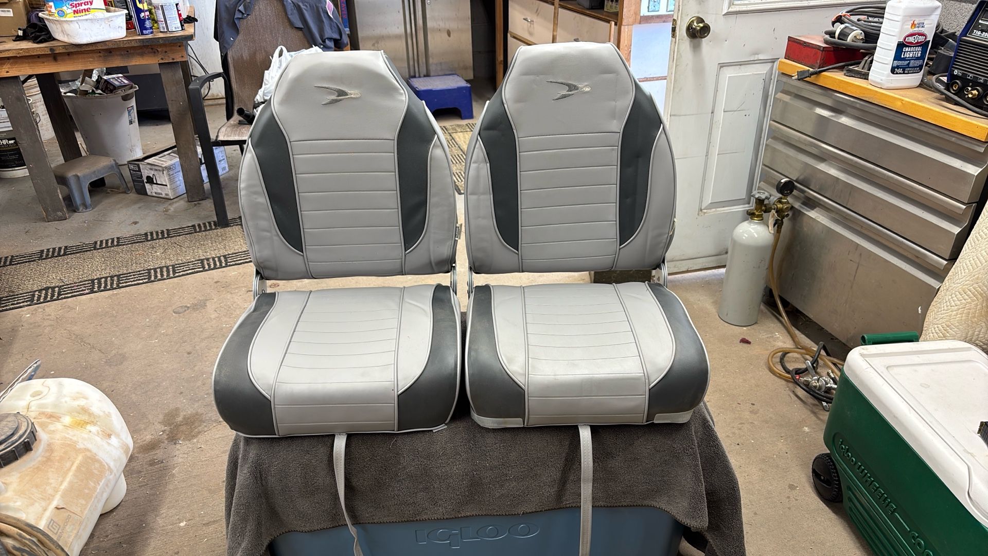 These are vinyl boat seats that turned out not to fit in my boat. They have never been installed or used. The bottoms measure 15” x 15.5”. These are striped high-back boat seats. Package Weight: 12.8 Pounds Brand: Wise boat seat manufactured by Wise Seating. The specific model number is WD892PLS-911, and the color is listed as CudMarble/CudCharcoal.