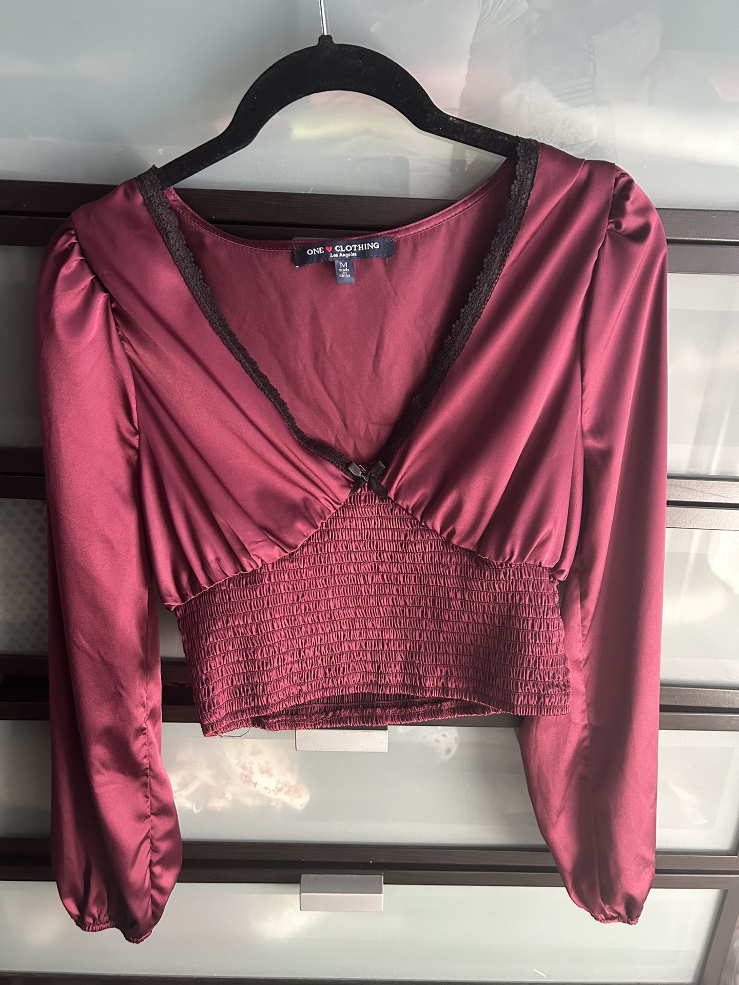 Burgundy V-cut Long Sleeve With Bow