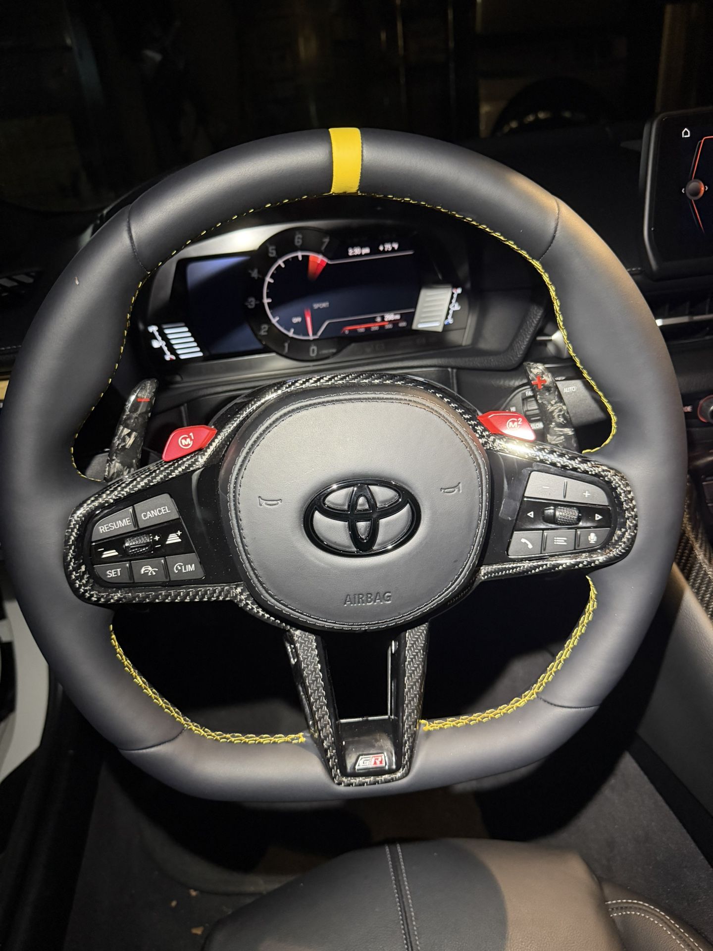 Full LCI G8x mk5 Supra steering wheel with upgraded forged carbon fiber padded shifters Cost me over 1600$ for the full setup