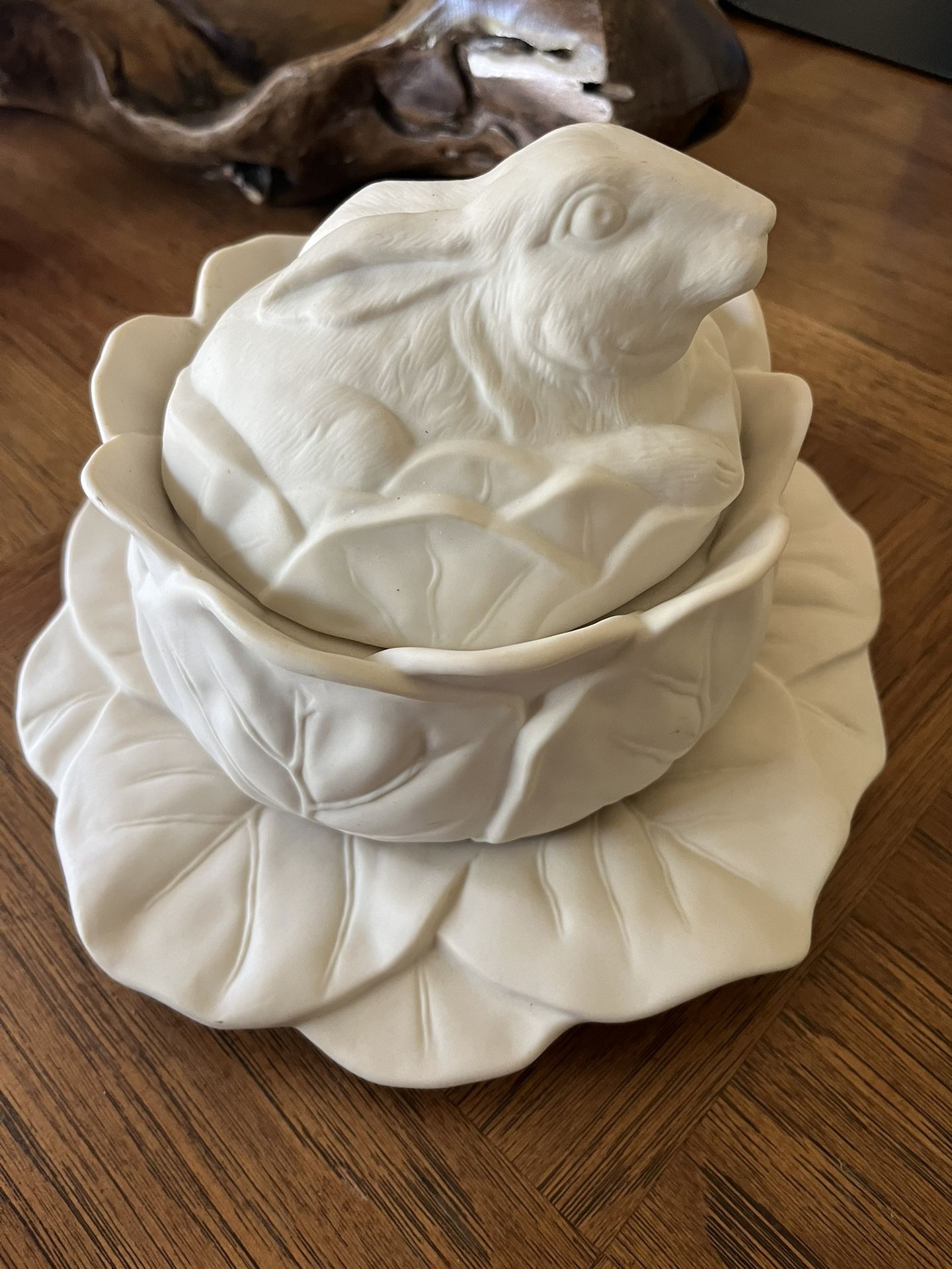 The museums porcelain and bisque rabbit Turin adaptation is glazed on the inside… It is dishwasher and microwave safe, but should not be placed in the oven - Never used - excellent condition Listed online between $50 and $95