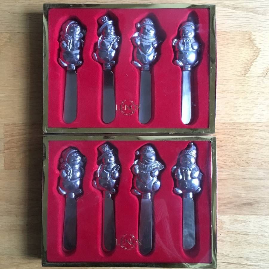 Lot of 2 Lenox Tableware Yuletide Metal Serveware Snowman Spreaders