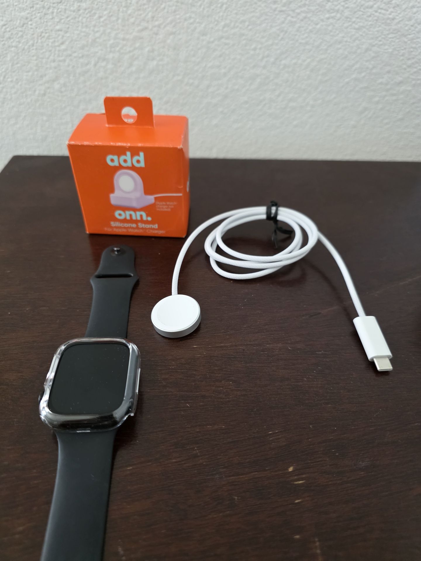 Like new never used. Comes with charger, new charger stand, and protective bumper case Smartwatch with Jet Black Aluminium Case with Black Sport Band - M/L. Fitness Tracker, ECG App, Always-On Retina Display, Water Resistant