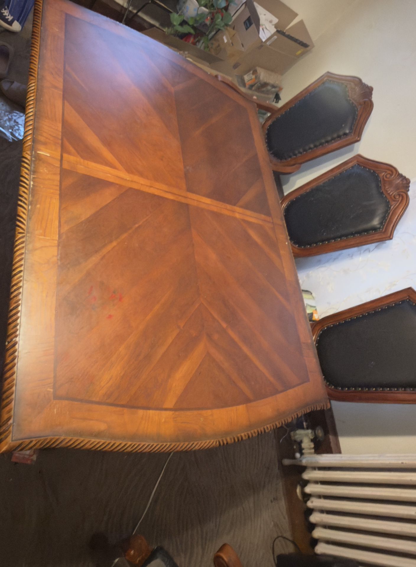 Large wood table , comes with two extra leafs.
