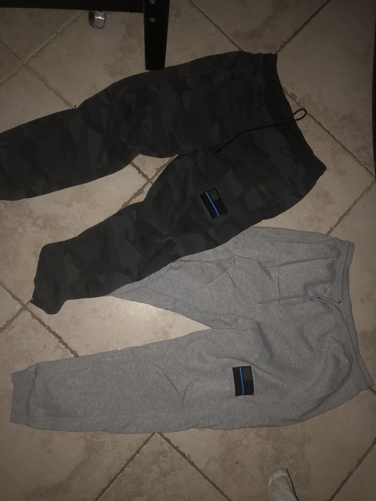 As shown in the pictures I have numerous pairs of joggers with different Blue Line designs/flags. High quality material and all come in XL but can be shrunk to fit as need. $50 for a single pair but if you buy 2 pairs you can get $40 on each pair instead.