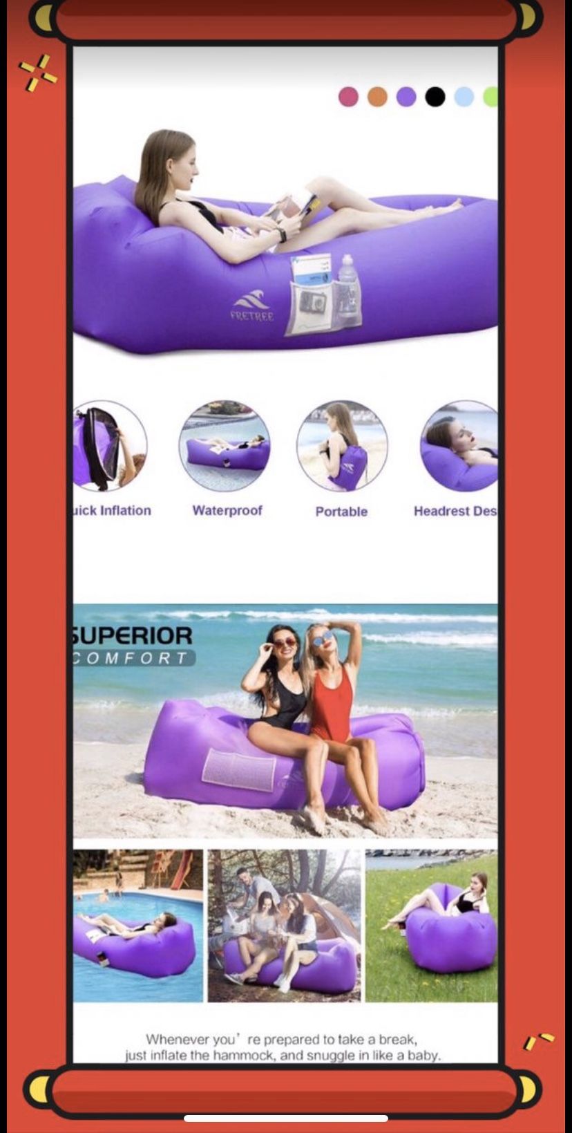 Brand New Inflatable Lounger Air Sofa Hammock - Portable Anti-Air Leaking & Waterproof Pouch Couch and Beach Chair Camping Accessories for Parties, Travel, Camping, Picnics, Pool, Large