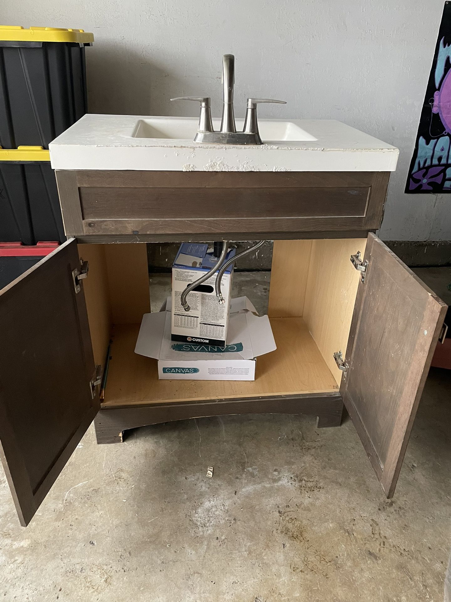 Restroom sink with cabinet. Semi new Pick up only