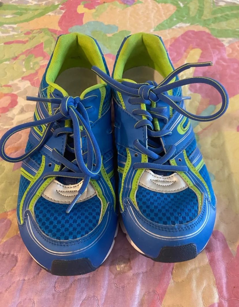 Tsukihoshi Velocity Sneakers, in lime green and royal blue. They are lace up, and are size 7.5 in women’s . These little treasures are in excellent condition and barely have any signs of wear . What Makes the Tsukihoshi Velocity So Friendly? Ultra-lightweight & flexible, ideal for everyday wear Easy on & off, secure hook-and-loop closure Heel stabilizer & arch support Rubber sole with Flex Joint promotes healthy foot motion. Cool breathable mesh upper. Removable green-tea-infused antibacterial insole Machine washable Hyperfunctional footwear since 1873 Synthetic & breathable mesh upper, EVA/TPR outsole. Remove insole and machine wash cold, air dry away from direct heat. Wash & air dry insole separately.