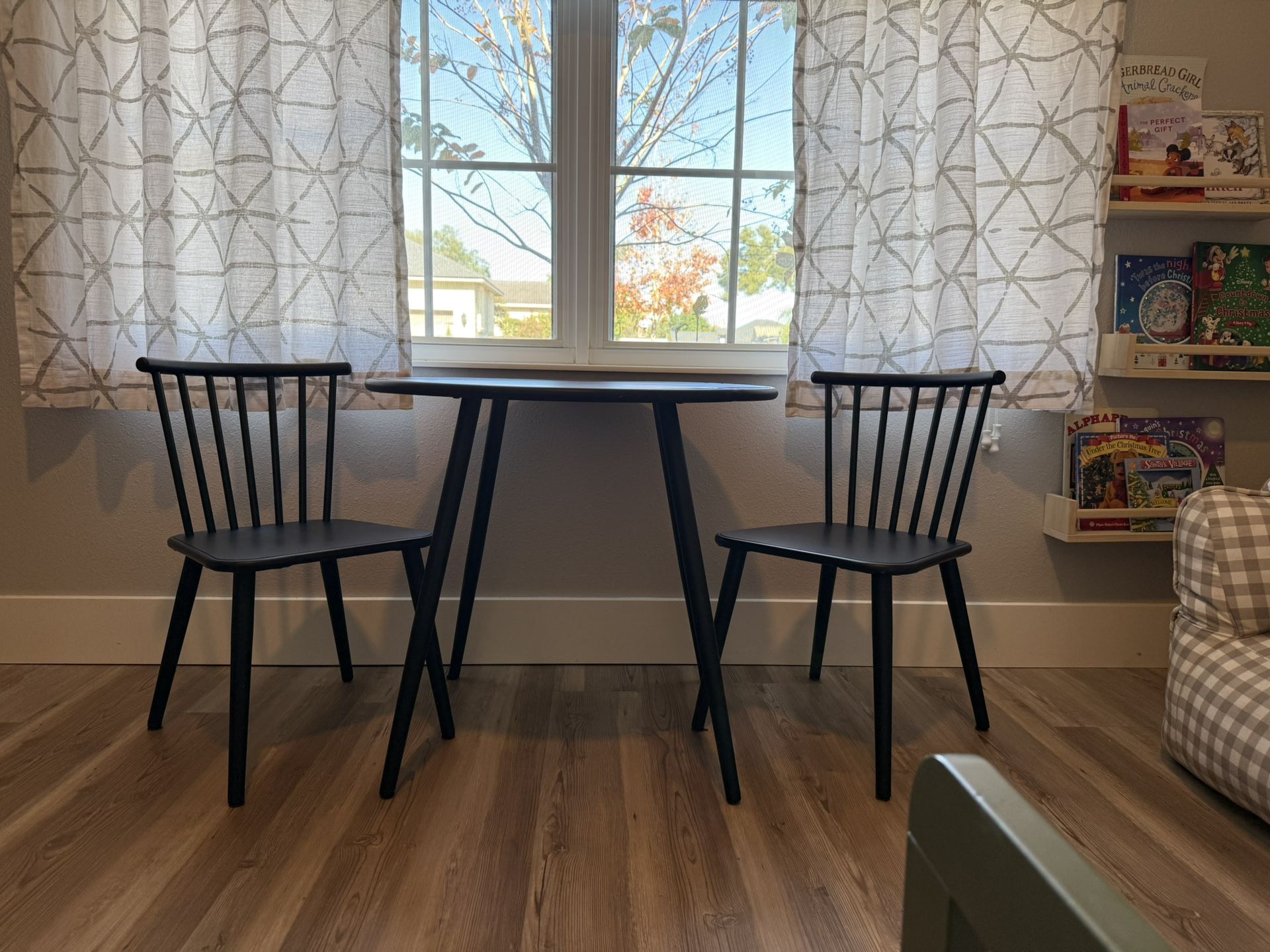 Pillowfort brand 3 pcs Windsor kids table and chairs. Like new condition
