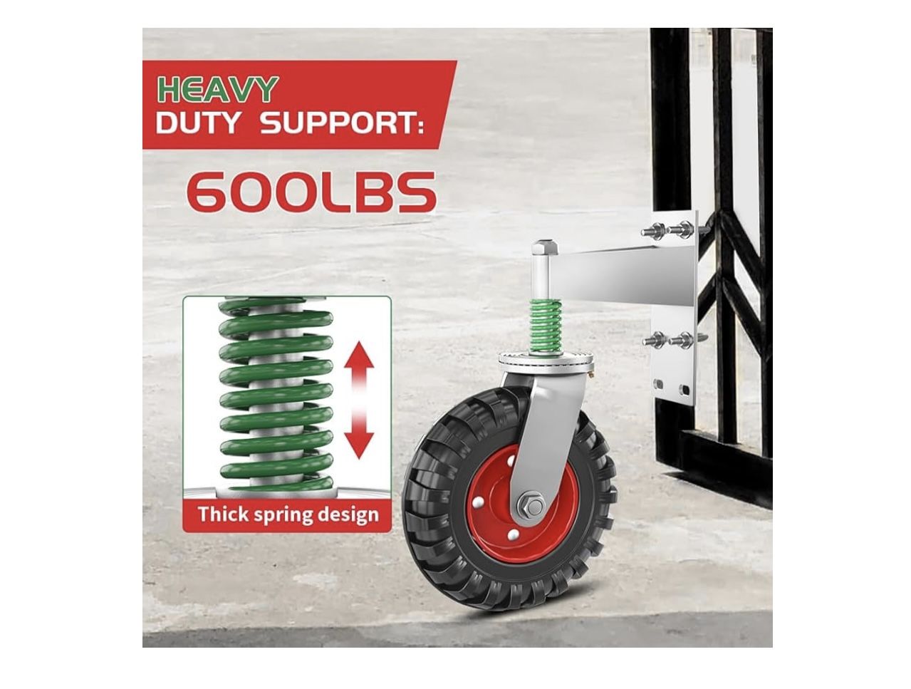 8inch Fence Gate Wheels for Metal Tube Gate 600lb Capacity 360 Degree Rotation Spring-Loaded Heavy Duty Gate Caster with Screws & Screwdriver
