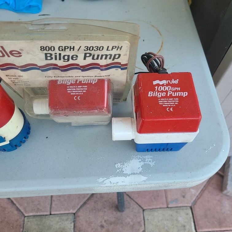 3 new bilge pumps never used 1. 360 gph 2. 500 gph 3. 1000 gph $120 for all 3 obo ( Check out my other post ) Boat parts , boat , rule , bilge pump, pumps , bomba de agua