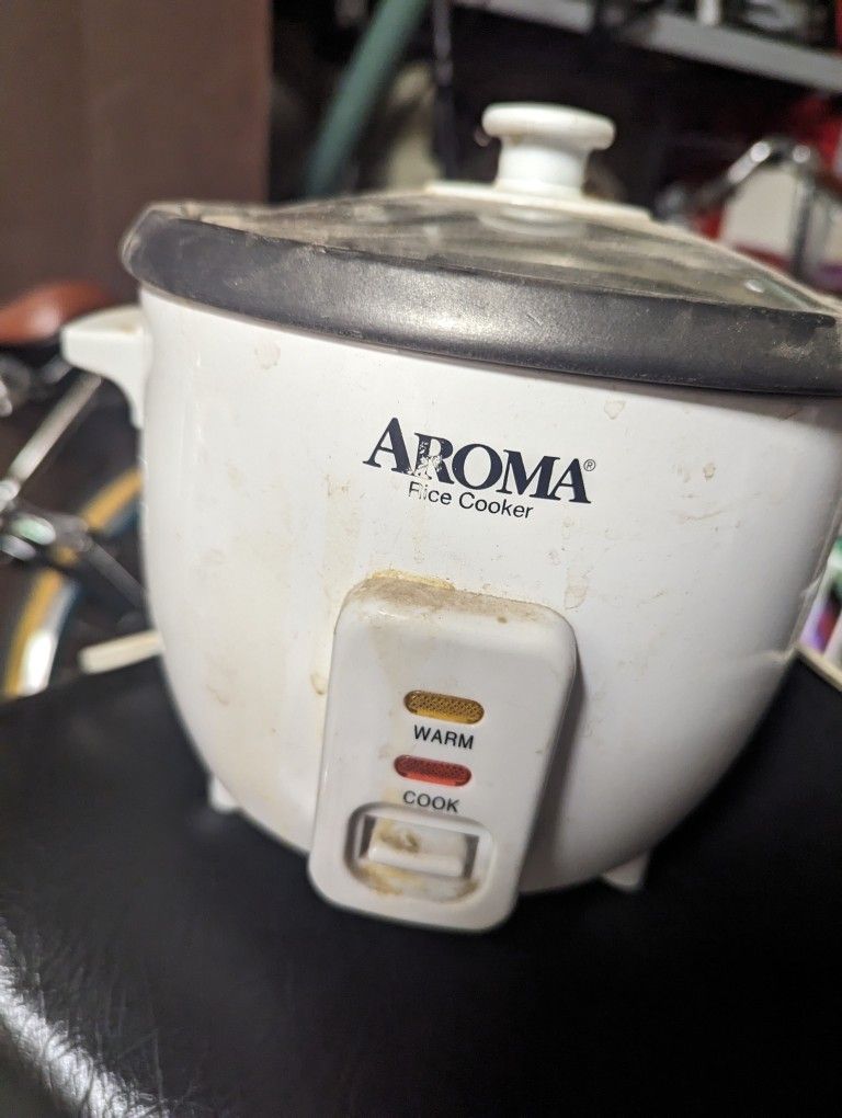 Aroma Rice Cooker, working condition, in storage for years. Has a ding to the pot, but the lining is intact and not chipped or pulling away.