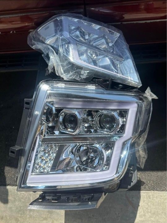 Chrome Housing Projector. LED Running Light. ▪️17-22 Nissan Titan ▪️16-22 Titan XD (Fits Models with Halogen Headlights Only) Se Habla Español. All Sales Are Final. Todas Las Ventas Son Finales.
