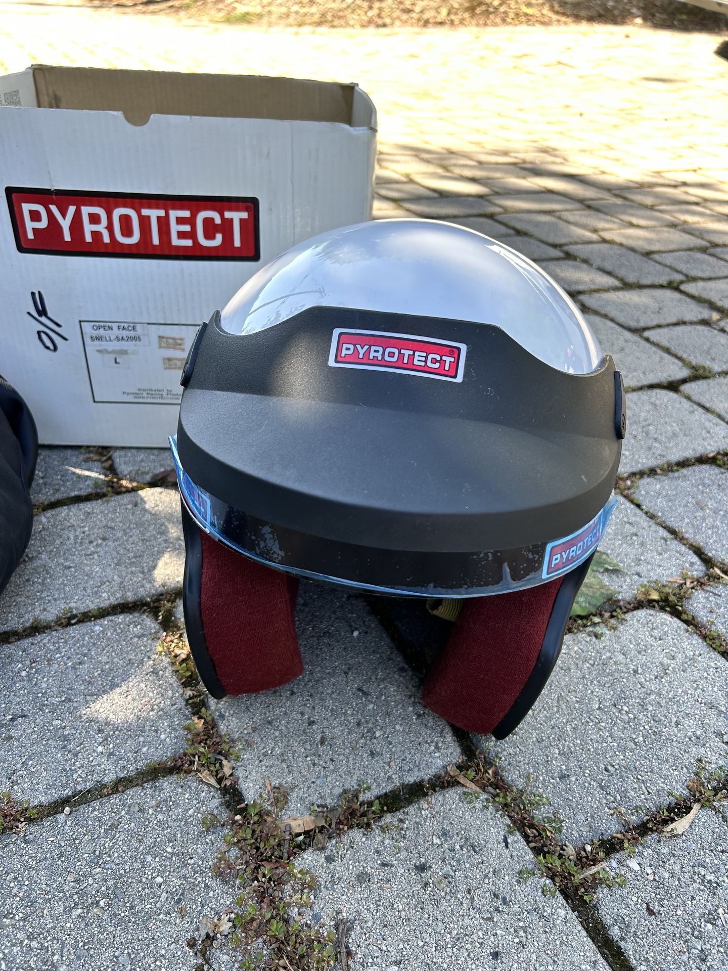 Pyrotect Open-face racing helmet in PRISTINE condition. Model: SNELL-SA2005 size Large. Only used a handful of times (and that’s being generous). The carrying case is Sherpa-lined and in excellent condition and has original box. Pick-up or pay shipping charges. Zelle or Apple Cash accepted