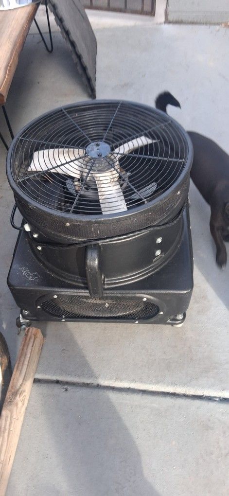 Strong fan whit switch it face up its blows hard and has four wheels to move around easy 80 obo