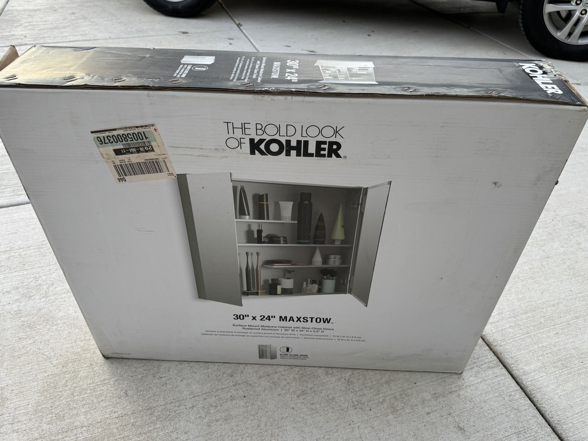 BRAND NEW! Surface-Mount Medicine Cabinet with Slow-Close Doors. Inside doors include mirrors