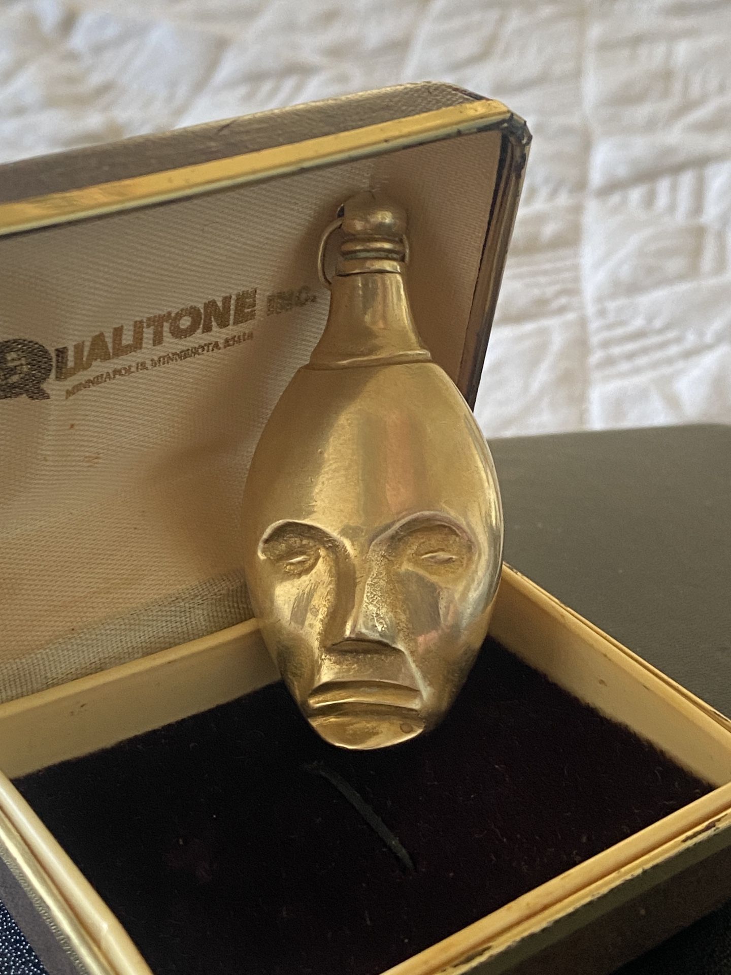 VTG. Solid Brass Dbl. Face Perfume/Chatelaine Pendant