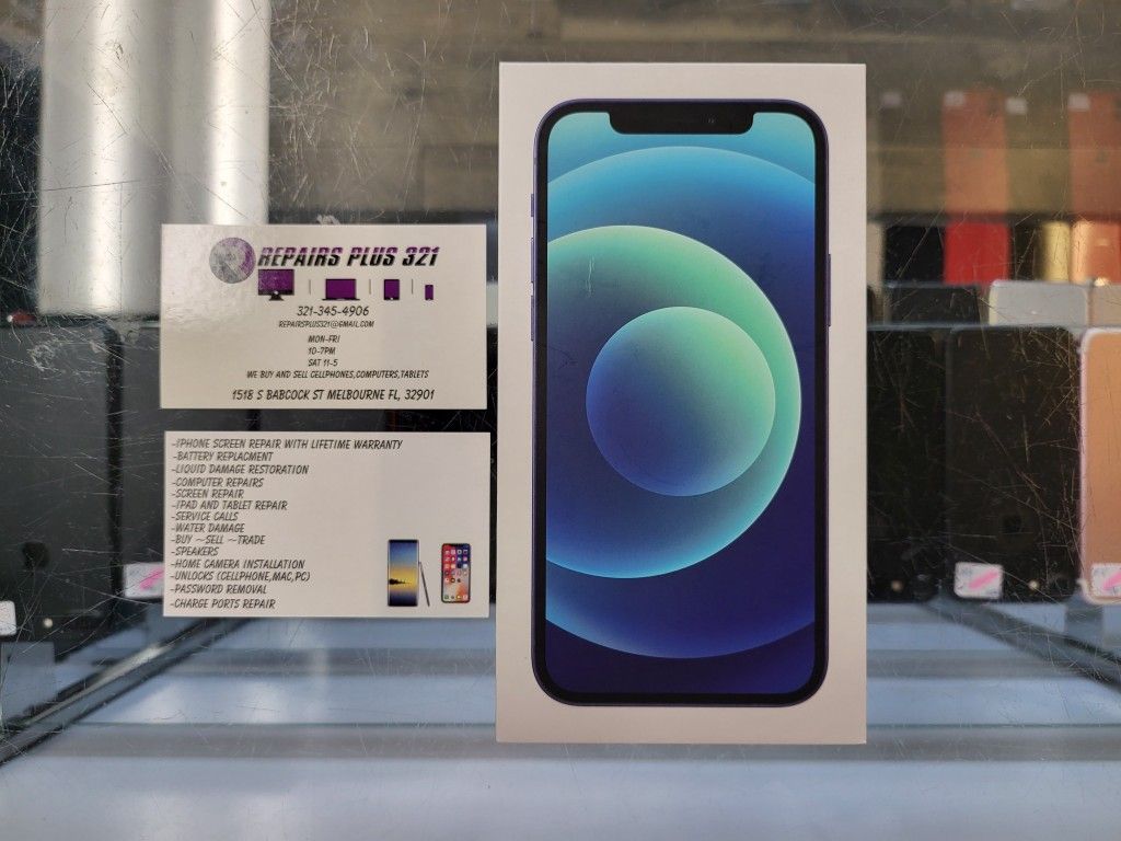 We have a brand new blue iPhone 12 128gb for sale! It works with AT&T, Cricket, Net10, and Straight Talk! We offer financing and we even give you a chance to extend the warranty to one year! Come Visit Repairs Plus 321! We have many other iPhones, Samsung, Macbooks, and Apple Watches for sale!