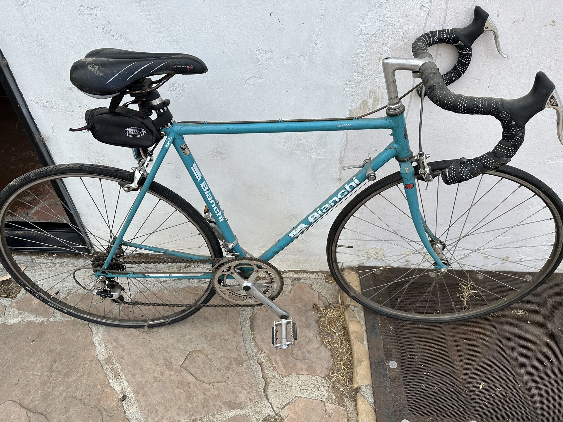 Nice, teal blue Bianchi Brava with FULL SHIMANO 105 INCLUDING 105 HUBS and nice Bianchi Tange CrMo superset tubing. Clean and fully functional may need tires and adjust/lube. Great components and in very good near new condition. Priced competitively.