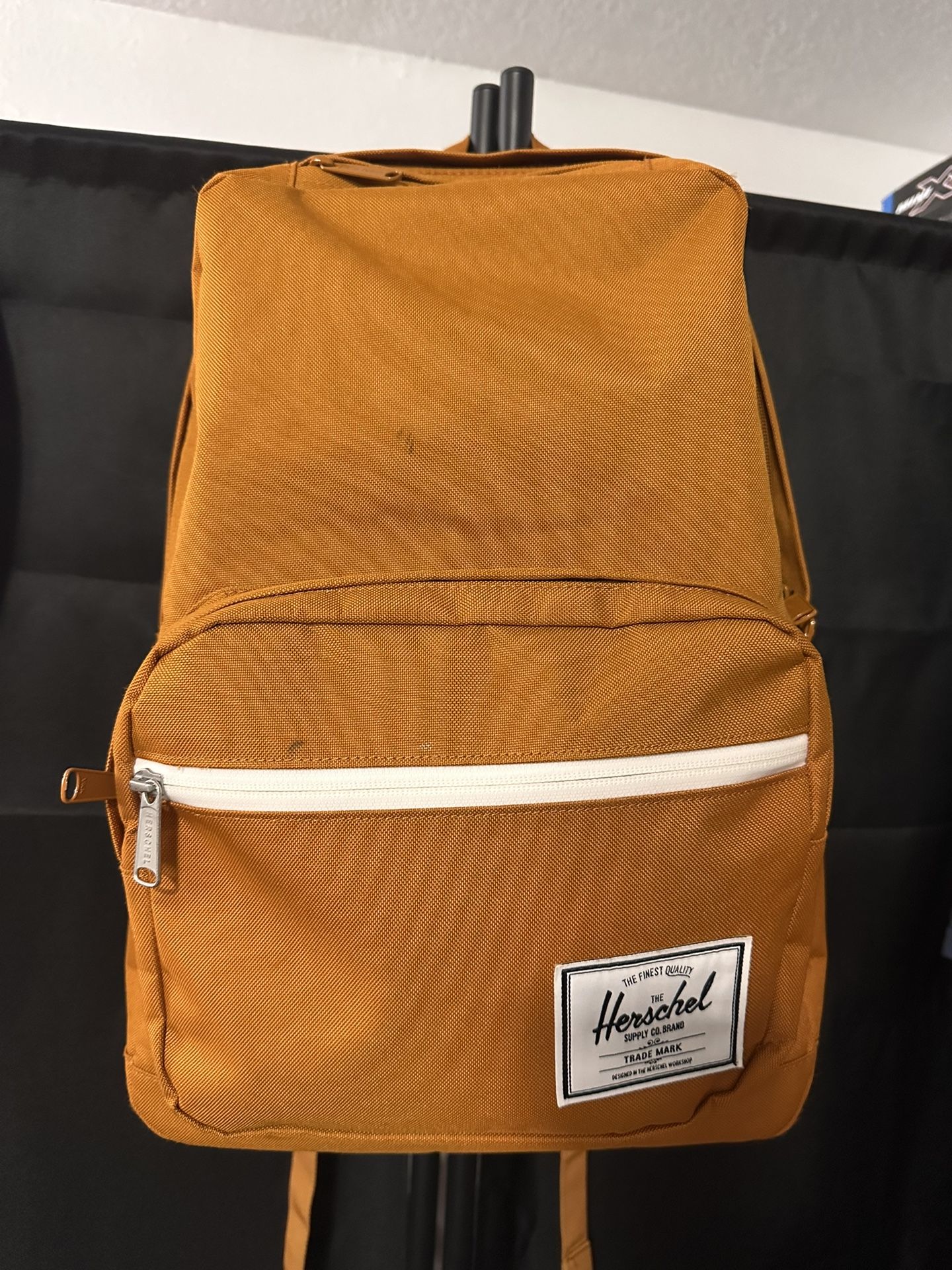 Herschel backpack. Dark mustard color. Insides are like new. Three Small spots on the outside. I can meet within a 20 mile radius. Cash only.