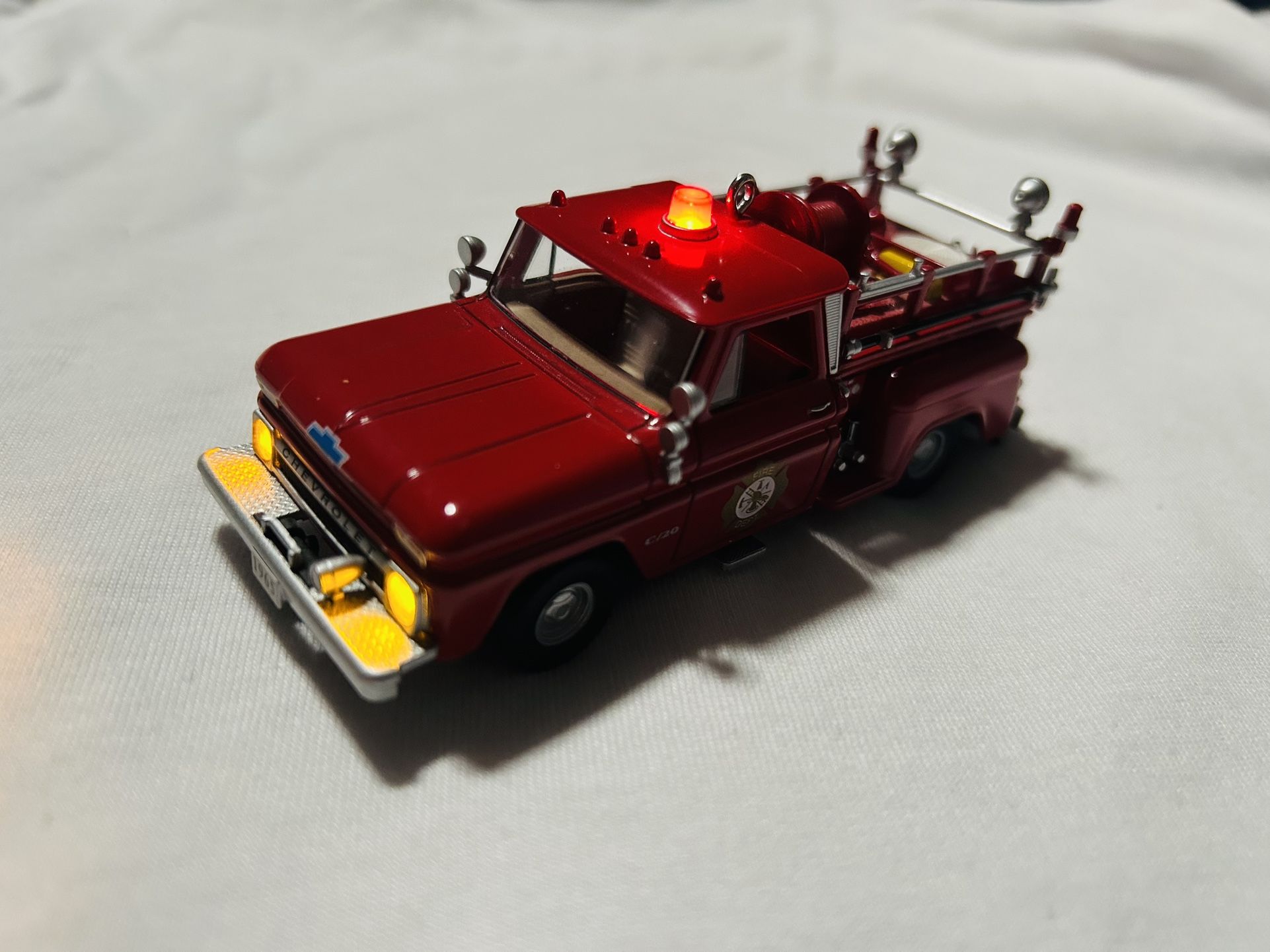 Hallmark Keepsake light up 1965 Chevrolet Fire Engine ornament. Like new, in original box, but batteries not included. Lights work, see pictures. Measures 1.5 x 4 inches. Great gift for collectors.